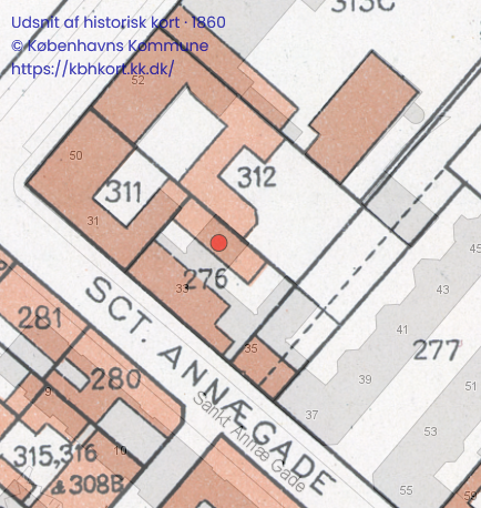 Mindepladen på huset i Sankt Annæ Gade 33.